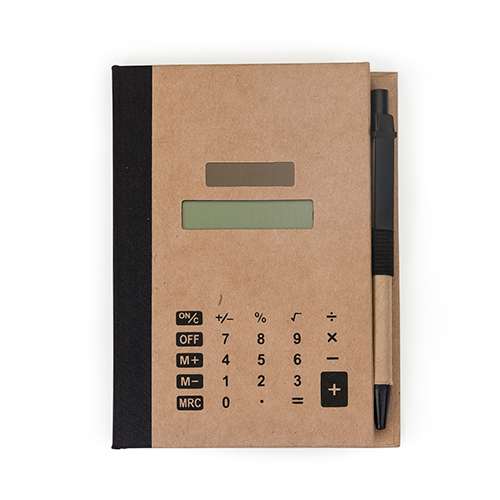 Bloco de anotações ecológico com capa calculadora solar de 8 dígitos acoplada. Possui quatro blocos auto-colantes com aproximadamente 25 folhas cada, bloco verde com aproximadamente 25 folhas, bloco branco de rascunho com aproximadamente 30 folhas sem pauta e suporte elástico com caneta ecológica de papelão com clip e ponteira plástica preto. observação: 15,7 cm x 11,7 cm x Caneta14 cm x 1,5 cm