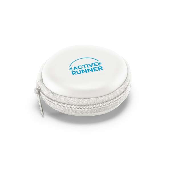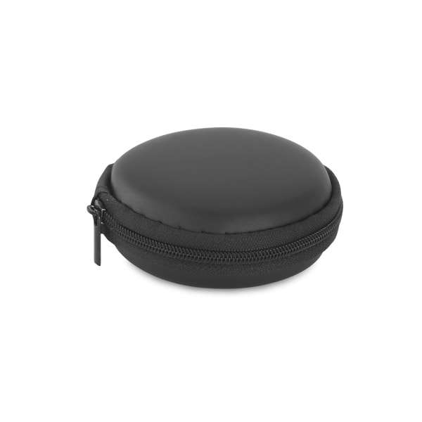 ABS e PVC. Com transmissão por bluetooth. Função para atender chamadas, controle de volume e conexão à playlist do dispositivo móvel. Incluso cabo USB/micro USB para carregar. Fornecido em bolsa em EVA. Bolsa: ø85 x 35 mm