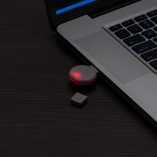 Pen drive redondo 4gb em plástico resistente, parte central lisa de ambos lados. Possui tampa e quando conectado uma luz vermelha acenderá.
